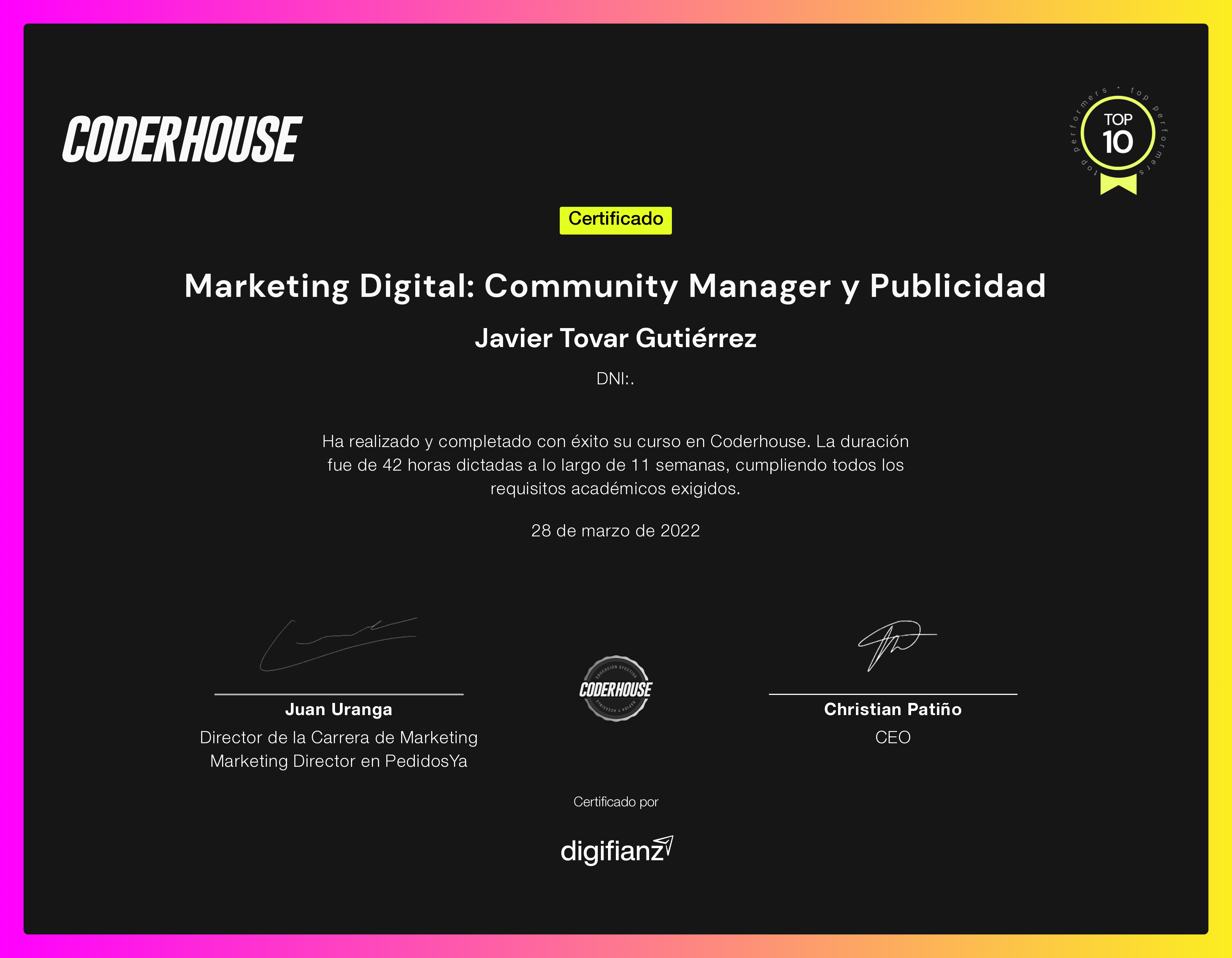 Hola, Mi nombre es Javier Tovar, Diseñador Gráfico y maestro en Marketing Digital. Tengo experiencia en edición y producción de audio, vídeo y fotografía, así como en motion graphics, locución y pilotaje de drones. Además, tengo habilidades en diseño UI/UX y tengo un gran interés por los negocios y la tecnología.